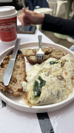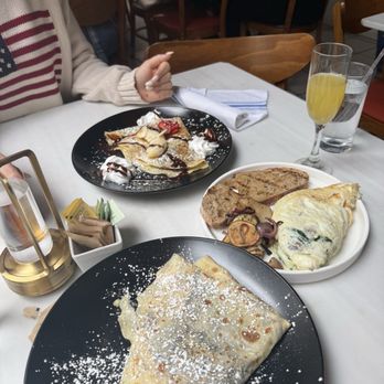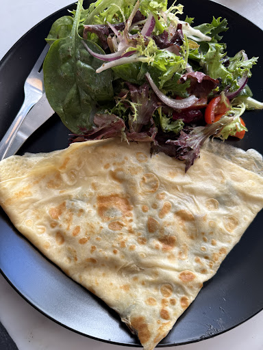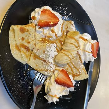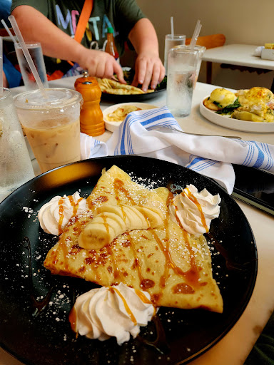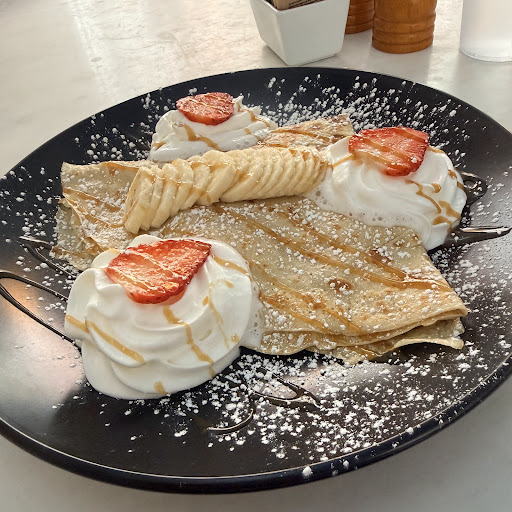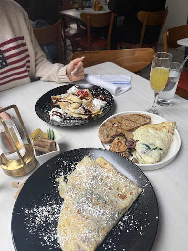 I had a wonderful experience at this restaurant! I ordered a sweet strawberry crepe that was simply delicious, and my boyfriend had a savory mushroom crepe it was amazing! Our server Elizabeth was very friendly and kept our coffee filled. She was so kind and attentive. The coffee was strong and flavorful, the perfect touch to brighten and wake up the day. The outdoor seating was dog friendly. Highly recommend.
