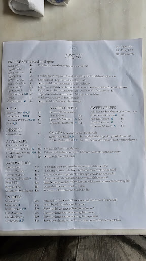 I was looking for a late night dessert and found Izzat. The strawberry banana crepe was perfect. The location was great too. Convenient but quiet. You can sit outside in peace and then walk one block back to bustling Canal. Great service too. I'll be back for a real meal. The guy with the French dip at the next table looked happy.