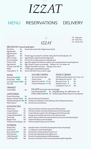 I've been to Izzat several times now, and I've honestly never had a dish I didn't enjoy. The food is consistently great. The French dip is a must, the steak and frites were cooked perfectly, and even the salmon was spot on. I keep coming back because everything is just done right. Next on my list to try are the crepes -- and I have a feeling they won't disappoint either.