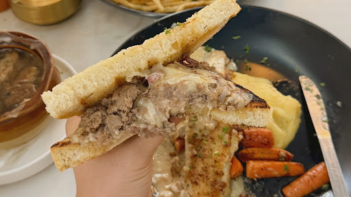 So good! We ordered this for pick up and brought it back to our hotel. My husband got the Monte Cristo and I got the Croque Monsieur and boyyyy was it amazing. We were looking for something not super heavy after a ton of fried food. We got the Brussels with sweet chili and YUM! Then my sandwich and the side salad was EXACTLY what I needed. 10/10 would recommend.